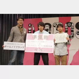 1点差で頂点を逃した一橋大は決勝進出チームで最少の3人。この大会はすべてのチームが「漫才」「コント」「ピン」を披露する総合力で戦うが、3年生の中野悠くん(21)は3本すべてに出演。コントでは完成度と画力の高いフリップ芸を披露するなどフル回転で、MCの「ジャルジャル」後藤淳平(31)は「3人っていうだけでも得点高いと思う」とうなっていた。