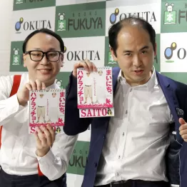 しかも、昨年の「M-1」優勝をきっかけに大ブレーク中の2人だけに、初版2万部と超強気。斎藤は「(NON STYLE)井上さんに憧れている部分はある。お気に入りのページは『キッスは目でしろ』です。目に星を入れる、AV嬢がよくやるやつをやりまして」と紹介した。