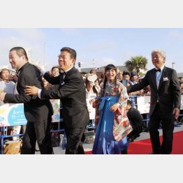 そんな開幕イベントの「トリ」を飾ったのは吉本興業の大崎洋社長(62)。西川きよし(69)や沖縄出身の芸人・宮川たま子(35)らと登場すると、笑顔でレッドカーペットを練り歩いた。