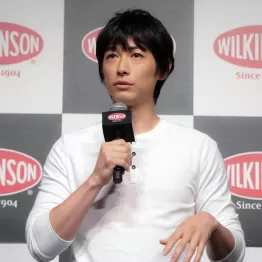 18日、炭酸水ブランド「WILKINSON」新CM発表会に出席したディーン・フジオカ(35)。「僕は甘いものが好きじゃないし、お酒も飲まないので、レストランでは炭酸水を飲むことが多い」と明かすと「ゲップが出たらごめんなさい」とおちゃめに試飲。それでも取材に訪れた女性記者をメロメロにするあたりはさすが“五代様”である。