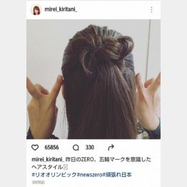 「昨日のZERO、五輪マークを意識したヘアスタイル」と桐谷がアップしたのは、髪が五輪ロゴ「オリンピックシンボル」の形に結われた後頭部の写真。桐谷は日本テレビ系のニュース番組「NEWS ZERO」でキャスターを務めている。今回投稿した写真には顔が写っていないため“本人確認”はできないが、9日放送の同番組で着ていた衣装を見ると、どうやら桐谷本人のようだ。