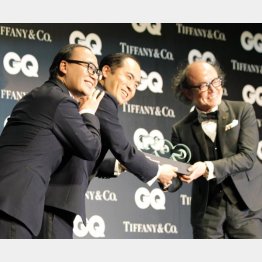 授賞式ではヘアスタイルがそっくりな同誌編集長の鈴木正文氏からトロフィーを渡され、MCが「トリオみたいですね」と突っ込む場面も。なかなかお目にかかれないスリーショットは、他の誰よりも輝いていた。