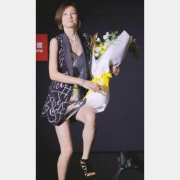 米倉涼子(41)が26日、都内で行われた米ミュージカル映画「ラ・ラ・ランド」(2月24日公開)のジャパンプレミアにゲストとして登場。主演のライアン・ゴズリングとデイミアン・チャゼル監督に花束を贈呈し、イベントを盛り上げた。 米倉は昨年12月30日に離婚を発表後、初めての公の場。 去り際に報道陣からは、「独身の心境は?」「心機一転?」と質問が飛んだが、ニコリと笑顔を浮かべただけで、語ることなく会場を後にした。