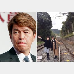 コトの発端は先月13日、読売テレビ制作の旅番組「クチコミ新発見!旅ぷら」(日曜午前10時55分)のロケの合間に、松本と早見優(50)がJR山陰線の線路内に無断で侵入した様子を記念撮影。おまけにその写真を松本が公式ブログ「天使のバカ」にアップしたもんだから非難ゴウゴウとなり、今月10日には鉄道営業法違反容疑で京都府警右京署から書類送検された。翌11日には本人が涙の謝罪会見を開き、一緒にやらかした早見もあとに続いたが、2人がロケに参加した回はお蔵入り。現場を管轄するJR西日本がスポンサーともなれば当然だろう。