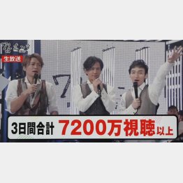 稲垣吾郎(43)、草なぎ剛(43)、香取慎吾(40)の3人が生出演した「72時間ホンネテレビ」は総視聴数7400万超。ツイッターでは「森くん」のキーワードが世界1位を獲得。「革命」とまで報じるメディアもあったほどのインパクトを残した。