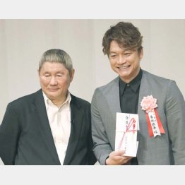 ビートたけし(71)が審査委員長を務める「第27回東スポ映画大賞授賞式」が25日、都内で行われ、元SMAPの稲垣吾郎(44)、草なぎ剛(43)、香取慎吾(41)がビートたけしのエンターテインメント賞・話題賞を受賞。 3人を代表し、香取が登壇した。 「東スポに凄くお世話になり、1面を何度も飾らせていただいて、結構早い段階で何度も“引退”と書かれましたが、引退しません。次回はぜひ映画大賞をいただけるようになれたら……他の賞はもらえないと思うので」 と自虐的なコメントで会場を笑わせた。