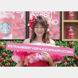 11日、スターバックスコーヒーの新作「ストロベリーベリーマッチフラペチーノ」のお披露目イベントにタレントの木下優樹菜(30)が登壇。新製品をイメージしたドレスで登場した。 新製品に「イチゴがビックリしちゃうくらいイチゴ超え!」とコメント。“ヤンキー妻”のイメージが強い木下だが、里田まい(34)、スザンヌ(31)と木下、3人のアイドルユニット「Pabo」時代をほうふつさせるラブリーぶり。“女子力の高い夫”フジモンも鼻高々だろう。