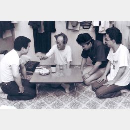 共同募金のコントをやったら、お客さんが本当にお金を入れてくれて8000円近く貯まったので、先生に相談したら炊飯器を買えって。それまでは楽屋に出前を頼む時、いつも「カキフライ1つにライス4つ」。先生がカキフライをわざと残してくれるので、それを僕らがおかずにして食べるというパターン。炊飯器を買ってからは米は先生が買い、おかずは1人100円ずつ出し合って僕が買い出し。小宮が米をとぎ、リーダーが電熱器で料理する。昼飯だけでしたが助かりました。