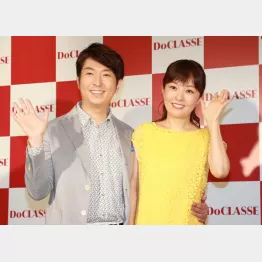 夫が妻の腰にさりげなく手を回すなど、ラブラブな夫婦仲を見せつけた。結婚6年目の映画コメンテーター有村昆(41)と丸岡いずみ(46)夫妻である。