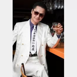 鼠先輩に会ったのは、昨年オープンした西武新宿線久米川駅から徒歩2分のバー「飲鼠(のみーまうす)」。トレードマークのパンチパーマにサングラス、白スーツ姿は今も変わらない。が、ネクタイには「ガッチガチの一発屋」の文字……。