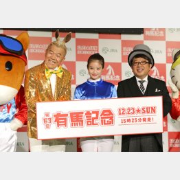 今週末の23日は毎年約10万人が熱狂する「有馬記念」。「世界で一番馬券が売れたレース」としてギネス記録にも認定された年末最後のビッグレースだ。その有馬記念をさらに盛り上げようと17日、JRA「有馬・ザ・チャンス」PRイベントが開催され、お笑いコンビのキャイ~ン(天野ひろゆき、ウド鈴木)、女優の今田美桜が参加した。