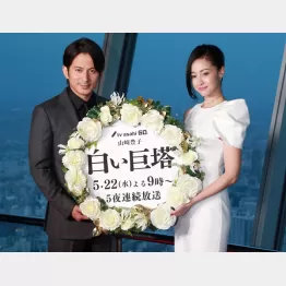 テレビ朝日の開局60周年記念ドラマ「白い巨塔」(5月22日~5夜連続)で共演するV6の岡田准一(38)と沢尻エリカ(33)が20日、東京スカイツリーでトークショー&点灯式に出席した。 主人公・財前五郎を演じる岡田と、その愛人役の沢尻。上昇志向の塊で野心家の財前教授が理想のタイプという沢尻は、「世の男子に一言言いたい。草食系とかよくわからない。もっとガツガツ生きろって言いたい。財前を見習って欲しい」と世のヤワな男たちを一喝していた。