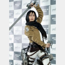 4日、都内で行われた「進撃の巨人展FINAL」オープニングイベントに、フリーアナウンサーの宇垣美里(28)が登場した。宇垣は「進撃の巨人」のヒロイン、ミカサのコスプレで登場。一緒に登壇した、お笑いコンビの和牛は「コスプレ、何やってもいけるやん」と絶賛。自身も大好きなマンガとあって、ノリノリで「戦わなければ勝てない……」と名ゼリフを披露した。