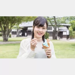 お隣の「佐々木屋小次郎商店」(岩国市横山2―5―32)は今回、初来店できました。見た目でおいしそうなベリーベリーチーズケーキ(400円)と、STU48といえば水色ということでラムネ(300円)を注文しました。冷たくておいしい! たくさんあるので、みなさんの好みの味も見つかりますよ。