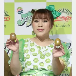キウイ柄のワンピースに身を包んだりんごちゃんは「ミュージックスターティン!」から始まり、武田鉄矢と大友康平のモノマネでキウイブラザーズの「アゲリシャス~♪」を熱唱。「小りんごの頃(幼少期)から実はリンゴよりキウイを食べていて。リンゴは……食べないです。今日のイベントのダンスの先生がカッコよかったことがアゲリシャス」とコメント。