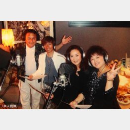 レコーディングスタジオに見えますけど、実は私のカラオケのお店なんです。録音機材をスタッフさんが持ち込み、私の世代の昭和アイドルや歌手の方をゲストにお呼びし、歌ったりしゃべったりする番組でした。その日は昔からずっと仲よくしている2人が来てくれた。