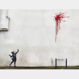 壁に描かれたスリングショット(パチンコ)を撃つ少女、そしてその先には何かが炸裂する様子が花びらで描かれている――。英南西部ブリストルで13日朝、地元住民らが見つけた壁画だ。