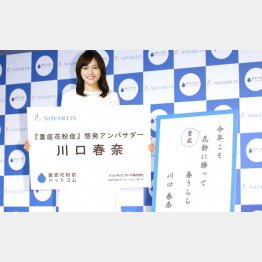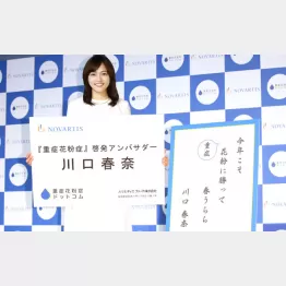 女優の川口春奈(25)が20日、都内で行われた「『重症花粉症』啓発アンバサダー就任イベント」に登場した。川口はインスタグラムにティッシュをわしづかみでハナをかむ“花粉症写真”をアップしたことがきっかけで、同アンバサダーに就任。「あれが私の日常です。(紹介された花粉症の治療法を)全部やりました」と飾らぬコメントを披露。自作の川柳(写真)を披露し「毎年、怖くてお花見とかにも行けていないので、今年こそ花粉に勝ってみたい」と明るく語った。