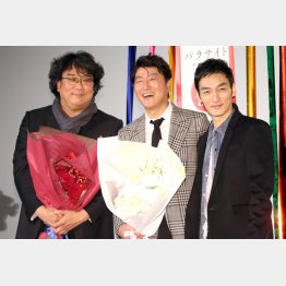 登壇したポン・ジュノ監督(50)は「アカデミー賞をとった以上に日本の観客のみなさんに注目していただいたことに感謝します」、主演のソン・ガンホ(53)は「両国の映画がお互いに上映され、お互いが共感できるきっかけになればいいと思います」と語った。