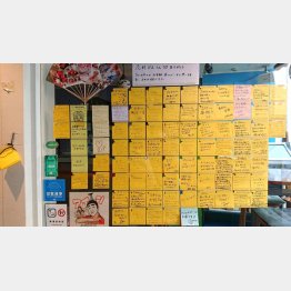 「志村さんがこよなく愛した麻布十番にあるガールズバーです。お店自体は緊急事態宣言後に営業自粛していますが、店の入り口のガラスの壁には付箋に書かれたメッセージ(写真)が大量に貼られています。すべて志村さんへのお礼の手紙です。店が閉まっている間でも訪れた人が書けるように店の外に付箋とペンが用意されていて、日々メッセージは増えていっていますよ。商店街の人たちが立ち止まって読みふけ、涙ぐむ姿を毎日のように見ています」