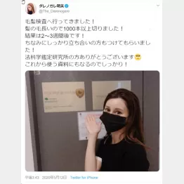 「毛髪検査」を報告するツイートでは、「毛髪検査へ行ってきました! 髪の毛長いので1000本以上切りました! 結果は2~3週間後です! ちなみにしっかり立ち合いの方もつけてもらいました! 法科学鑑定研究所の方ありがとうございます」と、写真とともに投稿する徹底ぶりだ。