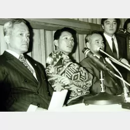 森進一が「おふくろさん」の歌詞の一部を勝手に変えて歌唱したことで、作詞家の川内康範氏とトラブルになった。青森から上京した川内氏をメディアは直撃。執拗な取材に激怒した川内氏。持っていた杖を振り回し大立ち回り。身をかわしながら杖を振り下ろした瞬間を撮ったカメラマンがいた。