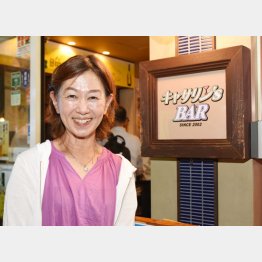 熊本市一のネオン街・花畑にある「キャサリ’sBAR」。カウンター越しにキャサリンさんが和やかに応対してくれた。