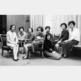 陽子と初めて会ったのは、電通の企業案内誌を作るというときに、それに載せる写真を撮るっていうんで、いろんな部署をまわったときなんだ。若い女の子が集まっている和文タイプ室(総務局文書部)でね、陽子に会った。ローライで撮ったこの写真、陽子がセンターにいるだろ。意識的じゃないけど、無意識に真ん中に陽子を置いて、他の女は脇役だね。でも内緒だけど、もう一人、気になるのがいて、すかさずオレ、ナンバーツーを脇に座らせて(笑)。陽子の隣に寄りかかってる正座の女だよ、なっ、そう言われるとわかるだろ、オレの好みがね(笑)。