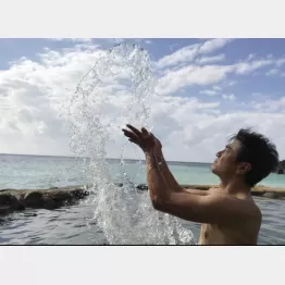 鹿児島港からフェリーで約4時間。着替える場所や休憩所などの施設は何もない「野湯」。自然の造形を生かした温泉について、原田は「目の前が海で大パノラマ。メチャクチャ気持ちいいです」と太鼓判を押す。