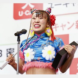 「女性芸人顔負けの話芸とインパクトあるファッションで10代から70代にまたがる老若男女のハートをわしづかみにしました。彼女の勢いの前にジャニーズの人気アイドルでさえ太刀打ちできない状況です」