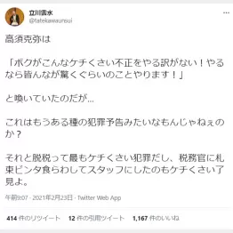 『高須克弥は「ボクがこんなケチくさい不正をやる訳がない! やるなら皆んなが驚くぐらいのことやります!」と喚いていたのだが…これはもうある種の犯罪予告みたいなもんじゃねぇのか?』(立川雲水・落語家)
