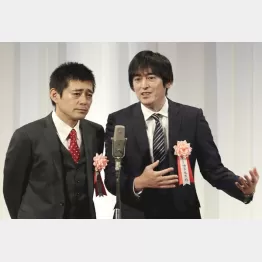 コンビ×コンビでうまくいっているのは日曜21時55分「爆笑問題&霜降り明星のシンパイ賞!!」(テレ朝系)か。28歳の霜降りと56歳の爆問では親子ほどの年の差があるが、そのギャップが逆に功を奏している。アシスタントの新井恵理那が緩衝材になっていてチーム感もほどよい感じ。