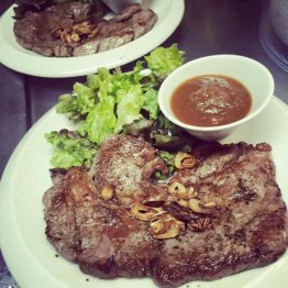 クック井上。さん ニンニクのパンチが効いた自家製オニオンソースのステーキ