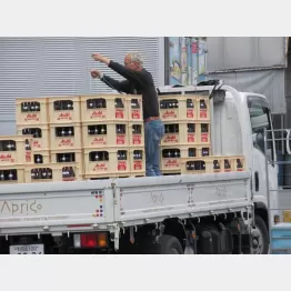 トラックいっぱいに酒を積み込む作業は楽ではない。ケースに入った瓶ビールはフォークリフトで積んでもらうのだが、生ビールが入ったアルミの容器、焼酎や酎ハイが入った段ボールなどは人手で積み込むのだ。生ビールの容器も10キロ以上あり、それを両手に提げて荷台に持ち上げるのは腰に負担がくる。