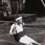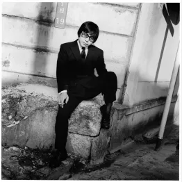 赤塚不二夫さんが亡くなって、もう13年が経つんだねぇ(漫画家の赤塚不二夫は2008年に肺炎のため72歳で死去した)。赤塚さんは何度も撮ってるんだよ。この写真は、“赤塚さん”だからバックは赤だって、ダジャレて撮ったんだよ(笑)。雑誌で撮ることになって、赤バックを持っていってね。おっ、こっちはカッコつけてるじゃないか。自分で「色男だ、色男だ」って言ってたからね(笑)。(雑誌『太陽』の連載<実力者たち>で荒木が各界の著名人を撮影、1975年1月号に別カットの写真掲載)