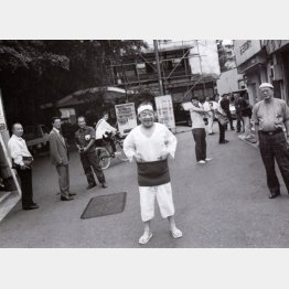 赤塚さん、感度がいいっていうか、これ撮るときに、近所を一緒に散歩しようって、この格好で歩いたの。途中でブランコがある公園があったので、オレはさ、これはアレしかないって思ったんだよ。赤塚さん、いつも話してくれるのはね、ジョン・フォードの『駅馬車』ばっかりなんだよ。馬の走り方がすごいとか、馬の動きがいいとかなんとか。映画の話はそればっかりなんだけどね。