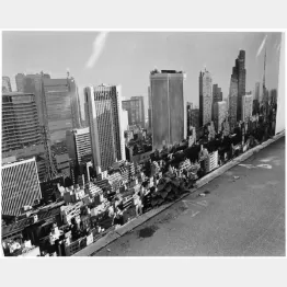 六本木で、六本木ヒルズや東京ミッドタウンの建設が始まった頃、そのあたりを歩いて、よく撮ってたんだよ。工事用シートをくぐって入ったら墓場だった写真もその頃だね(2000年撮影、連載59に掲載)。これも名作なんだよねぇ~。六本木の工事中の壁に写真が貼ってあるんだよ。ちゃんと地面も撮ってね、道端の草も写ってるんだよね。工事中の壁にビル群の写真。虚と実、虚実っていうか、こういうのにすごく惹かれるんだ。こういうの見ると街を歩きたくなるけど、こういうのを、わざわざ探していくわけじゃないのよ。「よく探しましたねぇ」なんて言われることがあるけど、そうじゃないって。たまたまなの。光景っていうか、場所や人に呼ばれるわけ。オレが人や場所を呼ぶっていうか、歩いてると出会っちゃうんだよ。