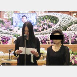 喪主の挨拶をするために立ち上がって参列席を向いた早貴被告が挨拶をし出すと、脇に大下さんが立った。