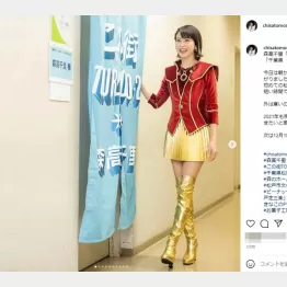 5日は、千葉県松戸市の公演の後、「今日は朝からいいお天気だったので、それだけでテンションが上がりました! 初めての松戸でのコンサート、短い時間でしたが、一緒に楽しめてよかったです」と投稿。金ピカの超ミニスカート+ニーハイのブーツ姿を披露した。