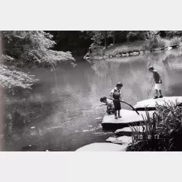 写真は光が作るんだってことだね。こんときは、なんかもう、ざわめきがあったもんなぁ。それで結局、写真はノスタルジーである! っていうことだね。写真っていうのは、まあ写真つーか人生は、ノスタルジーだと確信をもったんだね。こういう光景に出会って。デジタルの時代にさ、都会の真ん中でこういう棒をもって、ザリガニだか鯉を追ってるんだよ。少年時代の思い出とかさ、人生ではそういうノスタルジーが一番大切なんだね。
