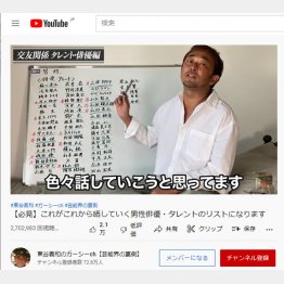 暴露系ユーチューバーの勢いが止まらない。綾野剛(40)、城田優(36)などの俳優やタレント、アイドルなどの裏の顔を暴露するために立ち上げられたYouTubeチャンネル「東谷義和のガーシーch【芸能界の裏側】」のチャンネル登録者数は72万人(3月18日現在)を突破し、再生回数が300万を超えた動画もある。動画を配信する東谷義和氏は今、間違いなく注目を集めている暴露系ユーチューバーの一人と言えるだろう。