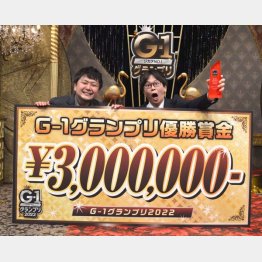 芸歴15年以上の芸人によるお笑いショーレース「G-1グランプリ2022」の決勝戦が、10日烏山区民会館ホール(東京都世田谷区)で行われ、エントリー数177組の中からお笑いコンビの「磁石」(佐々木優介、42=写真左、永沢たかし、42=同右)が見事優勝。賞金300万円を手にした。