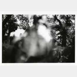 日付は8月15日。やっぱりオレの小っちゃな教養のさ、教養つうか仁義でさ、ずーっとまだ終わってないんだよ、8月15日がね。終戦記念日っつうか敗戦っつうか、日本の命日。ペンタックスのレンズをぶっ壊してさ、それで撮ったんだ。ちょうど、その頃、「ニキ・ド・サンファル展」が来てたから、彼女の<射撃絵画>へのオマージュを入れて、オレのコメントは、『彼岸からニキに射殺された私を、タロットガーデンに埋葬してほしい』。(ニキ・ド・サンファル〔1930~2002〕は戦後を代表する美術家のひとり。2015年に国立新美術館で回顧展が開催された。女性をテーマにした「ナナ」シリーズの彫刻で広く知られる。1961年に<射撃絵画>を発表。絵具を入れた袋や缶を石膏でキャンバスに固定し、離れた場所から銃を撃ち、作品を制作。パフォーマンス・アートの先駆けとして高く評価される。イタリアの南トスカーナにあるタロットガーデンは、ニキが20年以上かけて制作・造園したタロットカードをモチーフとする彫刻庭園)。
