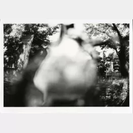 これからは左眼か、そう思ってやった個展が「左眼ノ恋」(2014年、タカ・イシイギャラリー)。写真の右半分を真っ黒に塗り潰したんだよ(連載81に掲載)。で、その「左眼ノ恋」の後にやったのが「ネガエロポリス 右眼墓地」(2015年、ラットホールギャラリー)ね。青山墓地をタクシーの窓から撮ってる“クルマド”だね(車の窓から撮影することを荒木は“クルマド”と呼ぶ)。