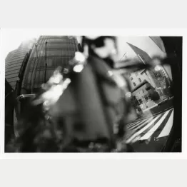 カメラを覗いたら、ガーンと銃弾が目に飛び込んだ、というような感覚。で、実際にカメラを覗くとちょうど右目で見る光景とそっくりなんだよ。レンズが肉眼に近づいてきてさ、オレ自身も、こんなふうに端っこだけしか見えないんだよ。全部じゃないんだ。