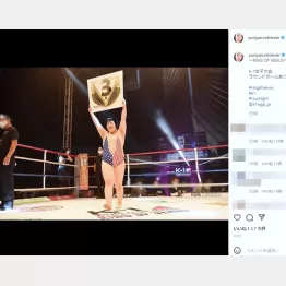 ゆりやんは、先日行われた「K-1 WORLD GP 2022~RING OF VENUS~」で角刈りのカツラに星条旗柄の水着で特別ラウンドガールを務めていた。
