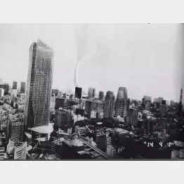 この東京の高層ビル群。墓にそっくりだろ、墓石と。この後に、パリの(国立)ギメ東洋美術館でやった個展(2016年)に、「トンボー・トウキョー」って写真を出したんだ。トンボーは鉛筆じゃないよ(笑)。フランス語で墓。東京砂漠じゃなくて東京墓地、「TOMBEAU TOKYO」ね。これは嘘じゃないからね(笑)。