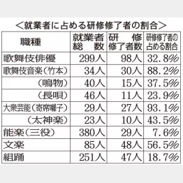 また、大衆芸能の寄席囃子は応募資格が〈原則45歳以下の女子〉と幅広いため、子育てしながら研修を受ける人もいる。
