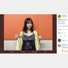 投稿されたのは、7日に発売されたPEACH JOHNとポケモンがコラボしたルームウエアのカット。上着をふわりとめくり、キャミソール姿の胸元を見せるカットを掲載。「ワンパチがプリントされた裏起毛ワンピは、温かくて着心地最高です」などとアピールしているが、投稿サイト上では、〈えちえちなキャミソール姿を公開!「胸元がセクシーすぎる!」ファン悶絶〉などと題されたスレッドが立ち、商品よりもセクシーな山下の姿につい目が行ってしまうファン心理が投稿されている。