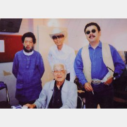 左からフォークシンガーの高田渡さん、カントリーミュージックのジミー時田さん、座っておられるのが桜井敏雄さん。この方はバイオリン演歌の方です。